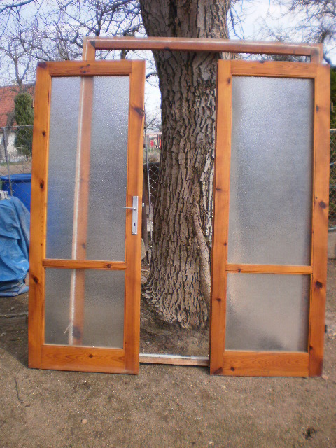 Prodám - dvoukřídlé modřínové dveře (interiérové) s modřínovou zárubní rozměry 140x198, jedno křídlo je cca 70 cm široké